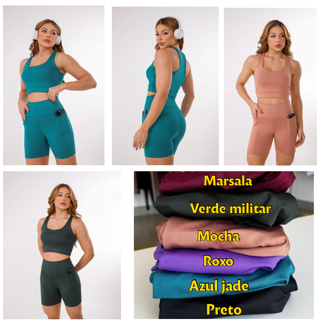 🔥 Conjunto Fitness Short + Top Nadador com Bolso 🔥
